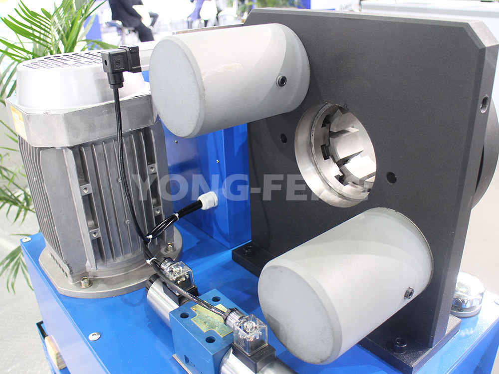 1、采用雙液壓回路運作原理,即活塞的進退及模具的張口和收縮運動都是依靠液壓動力源產(chǎn)生的動力。它不僅移動平穩(wěn)、回程快速,也不 會發(fā)生像彈簧回位,使模具張不開而鎖死的現(xiàn)象。而且油缸鎖緊系統(tǒng)設計都是前后貫通,易于扣壓各種異型彎頭。
