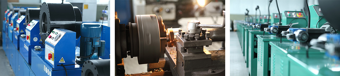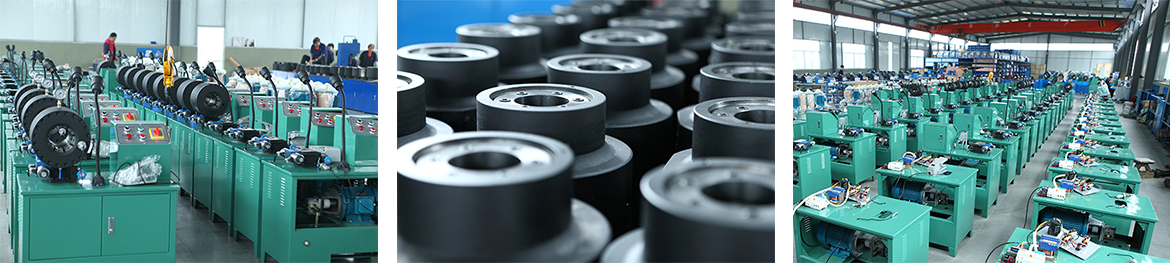 從液壓油管扣壓參數(shù)表中查得Ф19mm四層鋼絲膠管接頭外套外徑扣壓前為37mm,扣壓后為33.5mm,應(yīng)選用的模具內(nèi)徑為Ф33mm,對(duì)應(yīng)千分尺刻度為3。安裝好Ф33mm模具于模座上,并將千分尺刻度旋至3處,將膠管剝皮后與接頭組裝好。扣壓完畢后測(cè)量接頭外套外徑就是扣壓參數(shù)表的扣壓后數(shù)值33.5mm,則完成扣壓。如扣壓后外徑不符,微調(diào)千分尺后扣壓下一根膠管??蹓耗z管接頭時(shí):扣壓尺寸過多,膠管內(nèi)膠層被壓斷,造成漏油;扣壓尺寸太少,造成漏油和被油壓沖脫接頭。務(wù)必掌握合理扣壓度,以接頭芯子內(nèi)孔收縮度為準(zhǔn),國(guó)標(biāo)接頭受壓縮小0.1~0.4mm,普通接頭受壓縮小0.1~2mm。因膠管及接頭外套的生產(chǎn)廠家不同,如北方大多數(shù)膠管生產(chǎn)廠用GB標(biāo)準(zhǔn),南方用602標(biāo)準(zhǔn),國(guó)外SAE標(biāo)準(zhǔn),各廠膠管、接頭的具體尺寸、材質(zhì)可能不盡相同,因此扣壓參數(shù)表數(shù)據(jù)僅供參考,具體扣壓尺寸應(yīng)以壓力實(shí)驗(yàn)為依據(jù)。